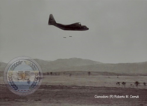 20 de mayo de 1982: El Hércules TC-64 indicativo «Pato» lanza contenedores A-22 a los efectivos del regimiento 8 establecidos en Bahía Fox. Su tripulación: Comandante: Vicecomodoro Alfredo Cano, Primer Piloto: Capitán Juan Hrubick, Navegador Militar: Vicecomodoro Eduardo Servatico, Primer Mecánico: Suboficial Mayor Salvador Giliberto, Segundo Mecánico: Suboficial Mayor Guillermo Aguirre, Primer OSEA: Suboficial Auxiliar […]